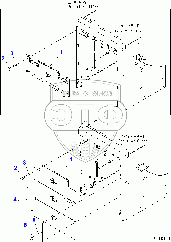 Каталог запасных частей к технике: Komatsu D355C-3. RADIATOR MASK