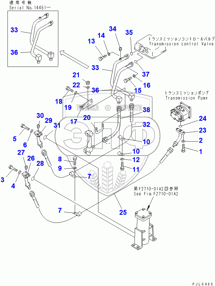 Каталог запасных частей к технике: Komatsu D355C-3. TORQUE FLOW TRANSMISSION PIPING
