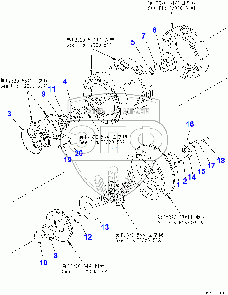 Каталог запасных частей к технике: Komatsu D355C-3. TRANSMISSION BARE (2/2)