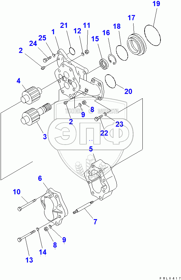 Каталог запасных частей к технике: Komatsu D355C-3. WINCH PUMP