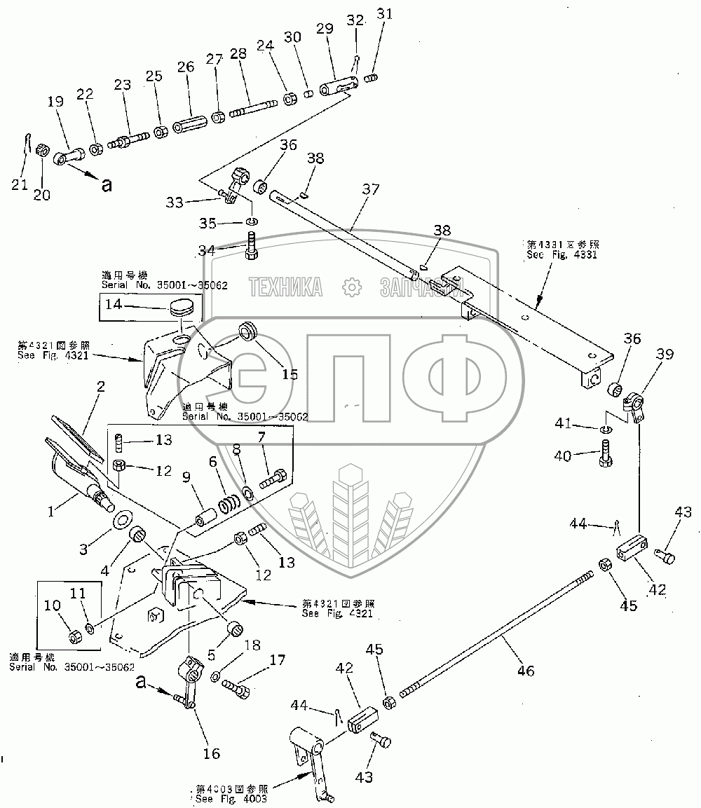 Каталог запасных частей к технике: Komatsu D85A-21. DECELERATOR PEDAL (35001-)