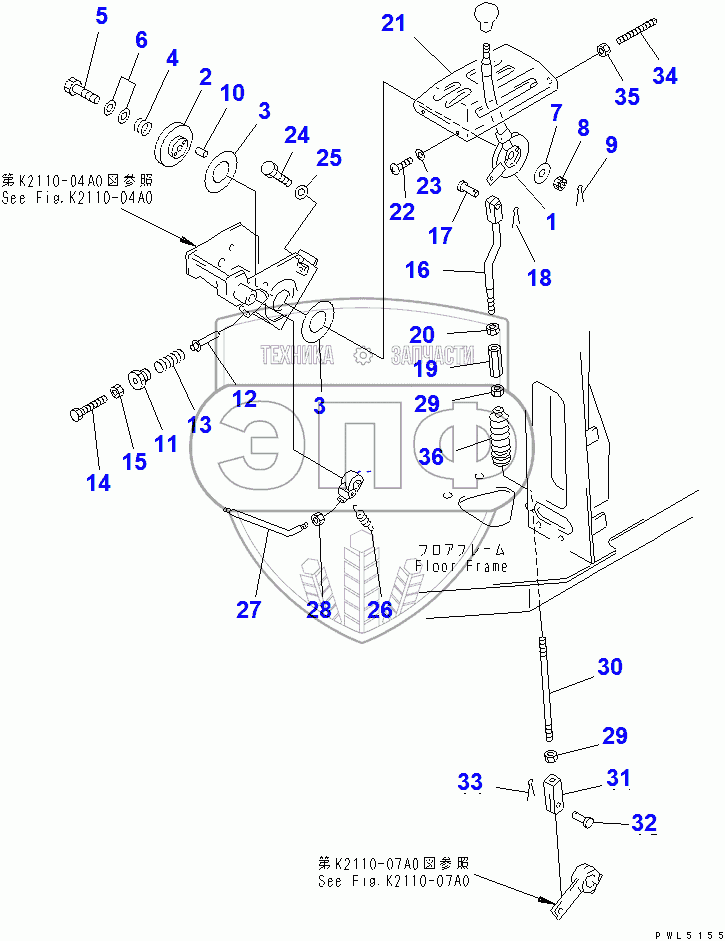 Каталог запасных частей к технике: Komatsu D85A-21. FUEL CONTROL LEVER