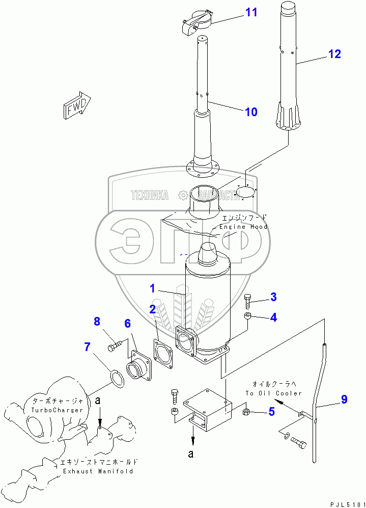 Каталог запасных частей к технике: Komatsu D85A-21. MUFFLER (WITH EXTENTION PIPE)