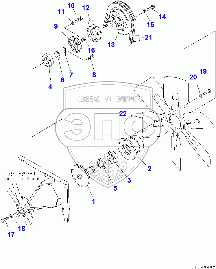 Каталог запасных частей к технике: Komatsu D85A-21. RADIATOR FAN PULLEY