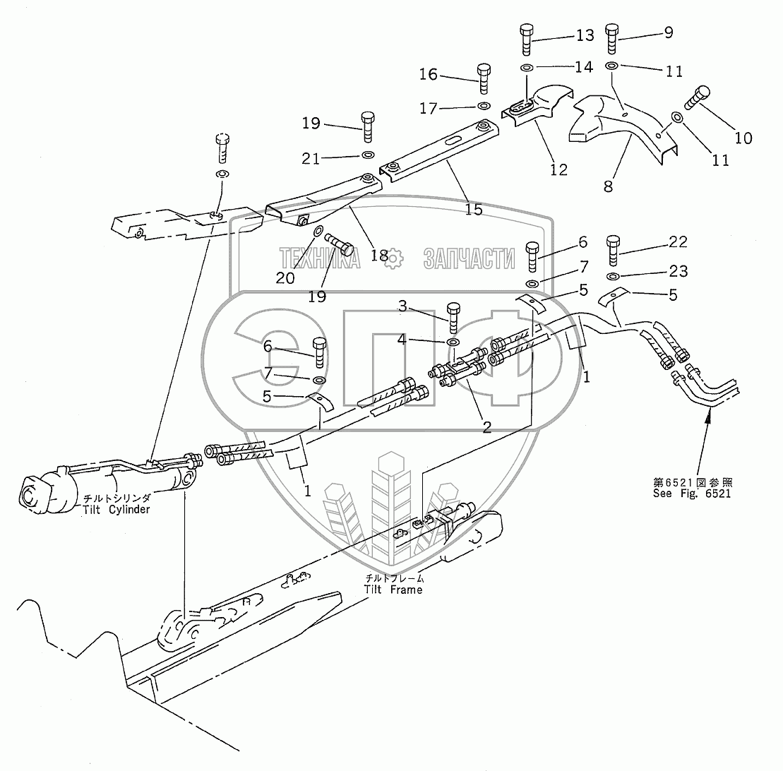 Каталог запасных частей к технике: Komatsu D85A-21B. BLADE TILT CYLINDER PIPING(35001-)