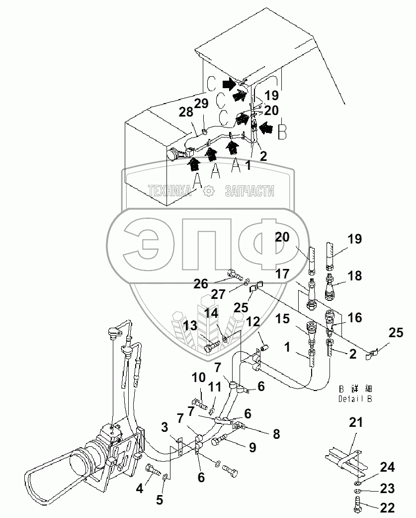 Каталог запасных частей к технике: Komatsu D85A-21B. COOLING PIPING (1/2)(36441-)