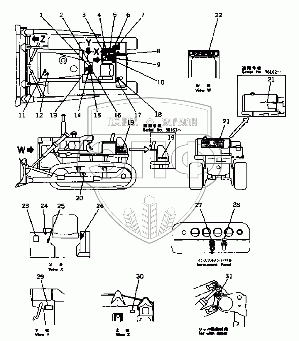 Каталог запасных частей к технике: Komatsu D85A-21B. MARKS AND PLATES (ARABIC)(35001-)