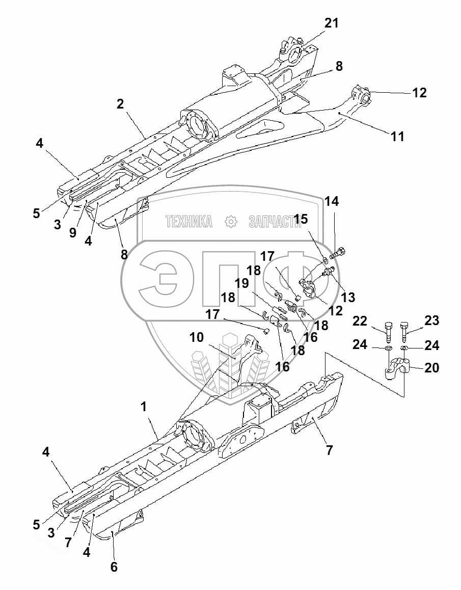 Каталог запасных частей к технике: Komatsu D85A-21B. TRACK FRAME(35001-)