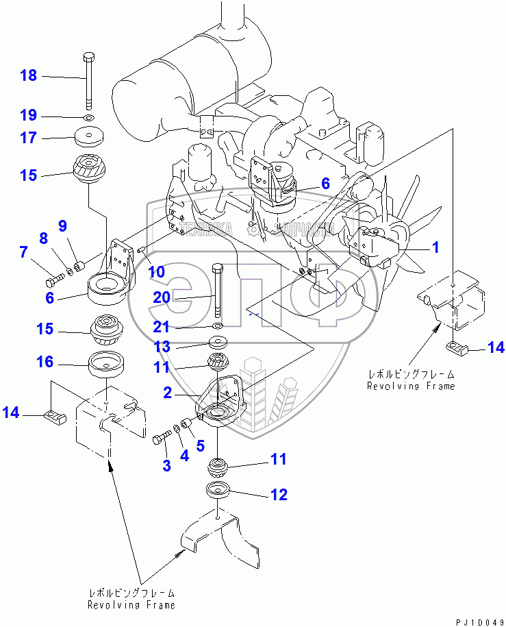 Каталог запасных частей к технике: Komatsu PC200-6. ENGINE MOUNT(110540-)