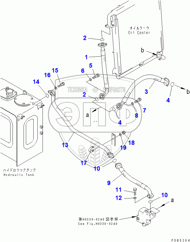 Каталог запасных частей к технике: Komatsu PC200-6. OIL COOLER LINE(96514-)