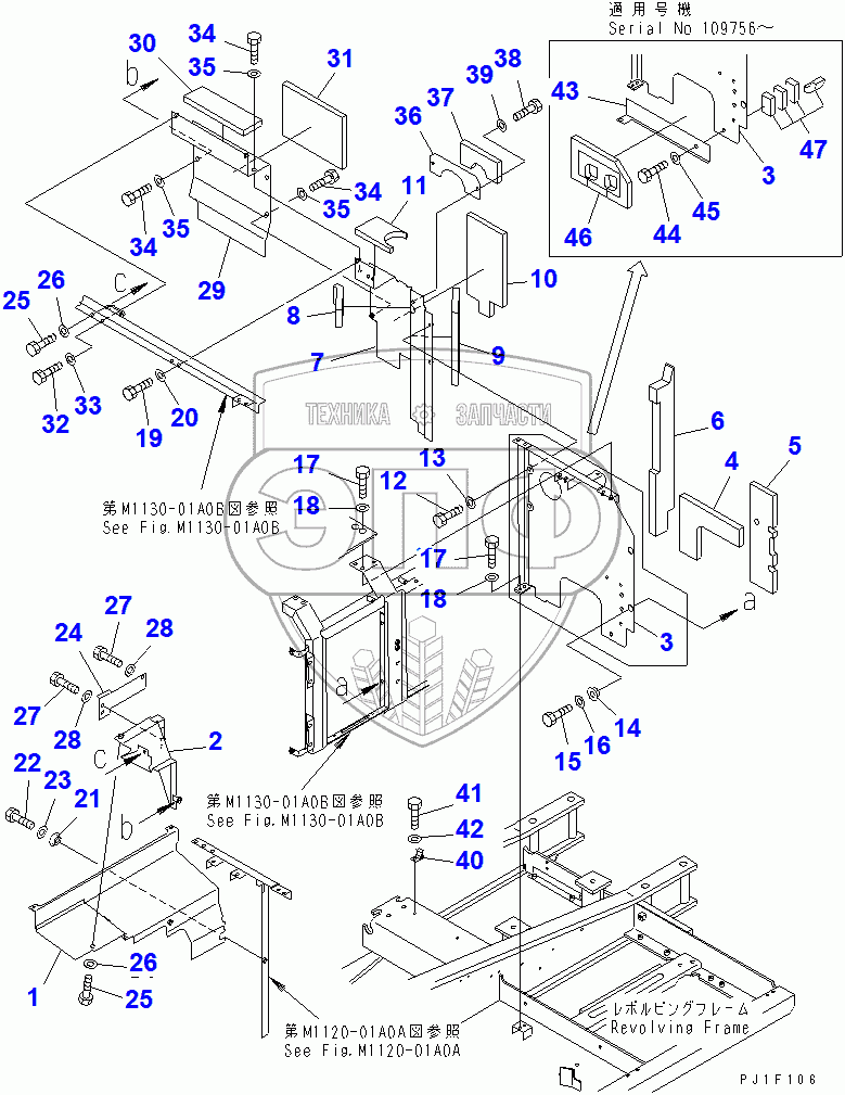 Каталог запасных частей к технике: Komatsu PC200-6. PARTITION (MACHINE CAB)(96514-)