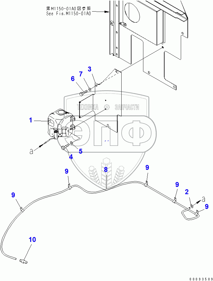 Каталог запасных частей к технике: Komatsu PC200-7. WINDOW WASHER(205897-250000)