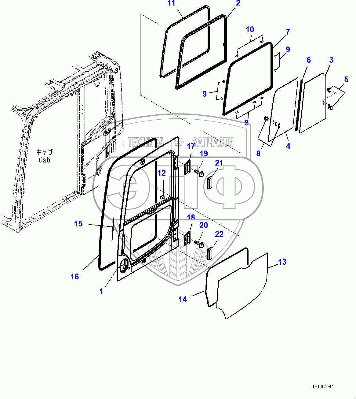 Каталог запасных частей к технике: Komatsu PC200LC-8M0. Cab, Door (400002-)