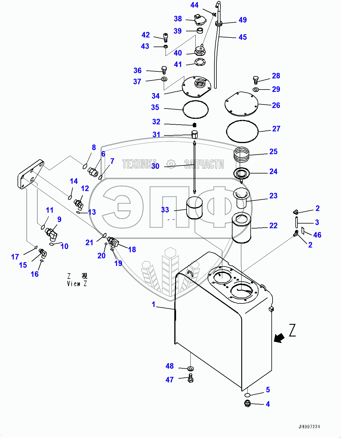 Каталог запасных частей к технике: Komatsu PC200LC-8M0. Hydraulic Tank (400001-400072)