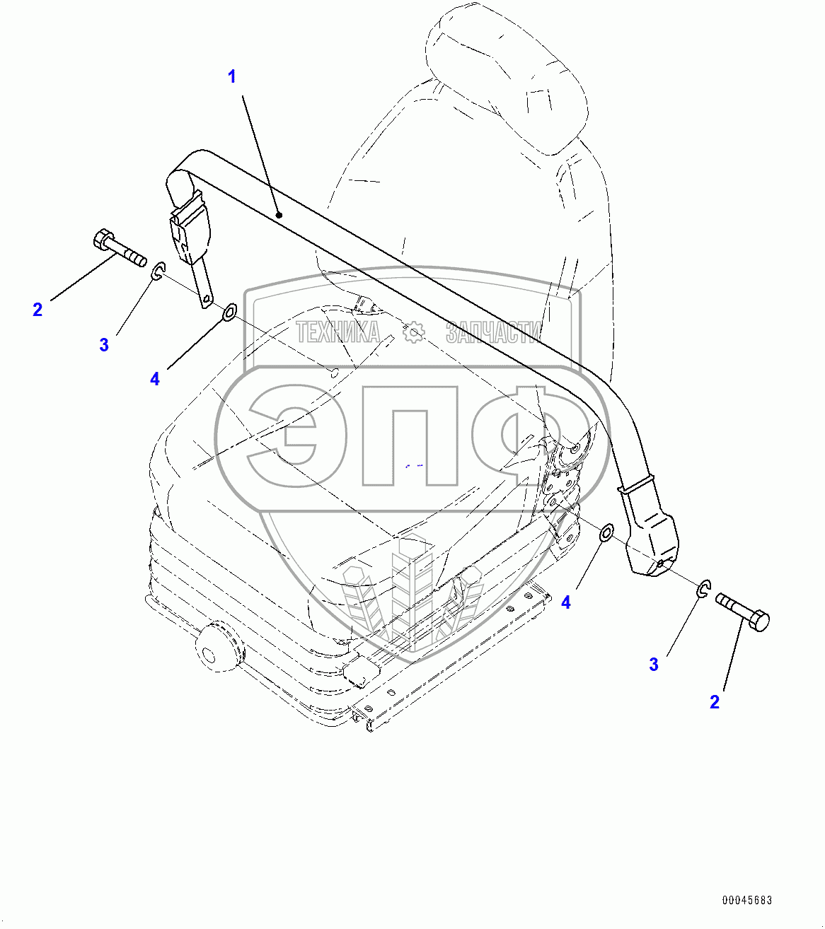 Каталог запасных частей к технике: Komatsu PC200LC-8M0. Seat Belt (400001-)