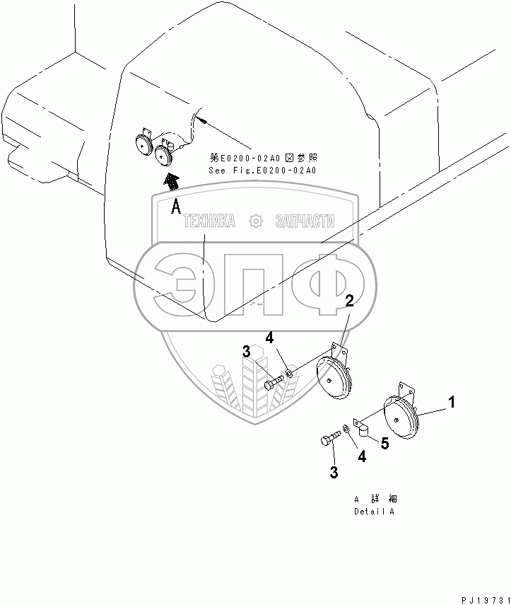 Каталог запасных частей к технике: Komatsu PC210-6. HORN
