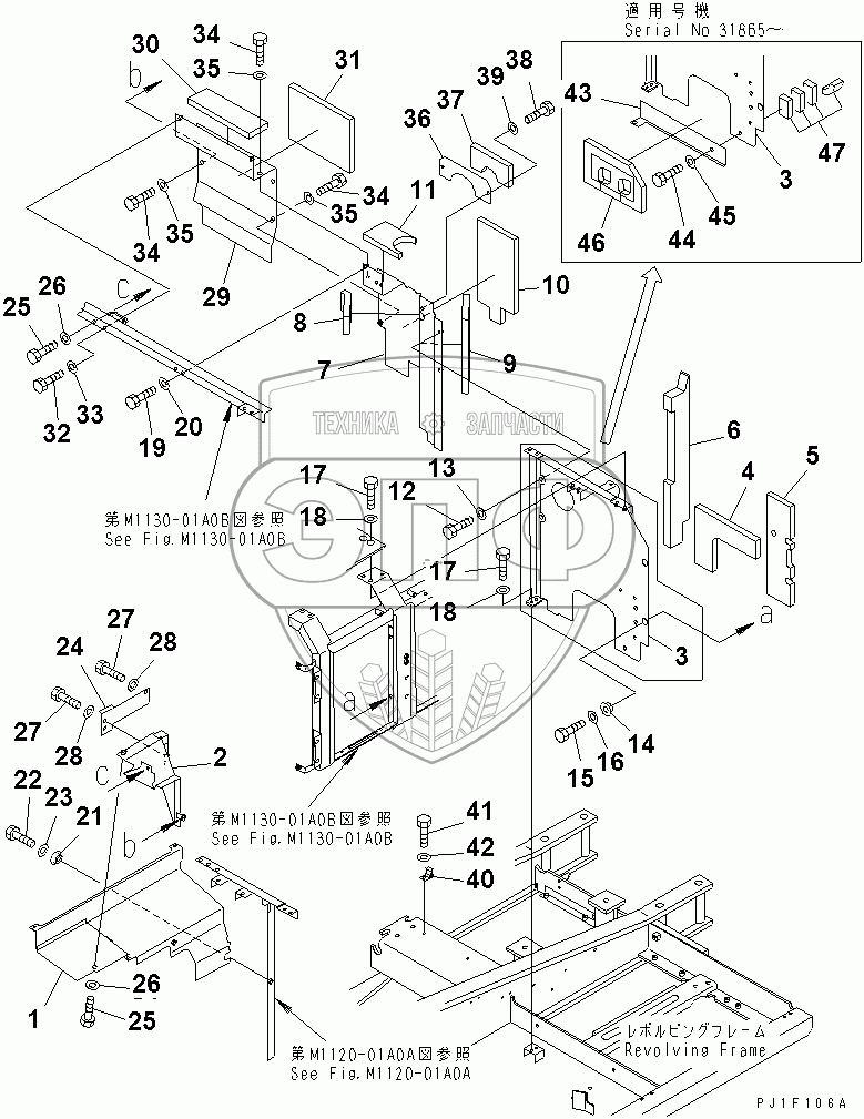 Каталог запасных частей к технике: Komatsu PC210-6. PARTITION (MACHINE CAB)(#30980-)