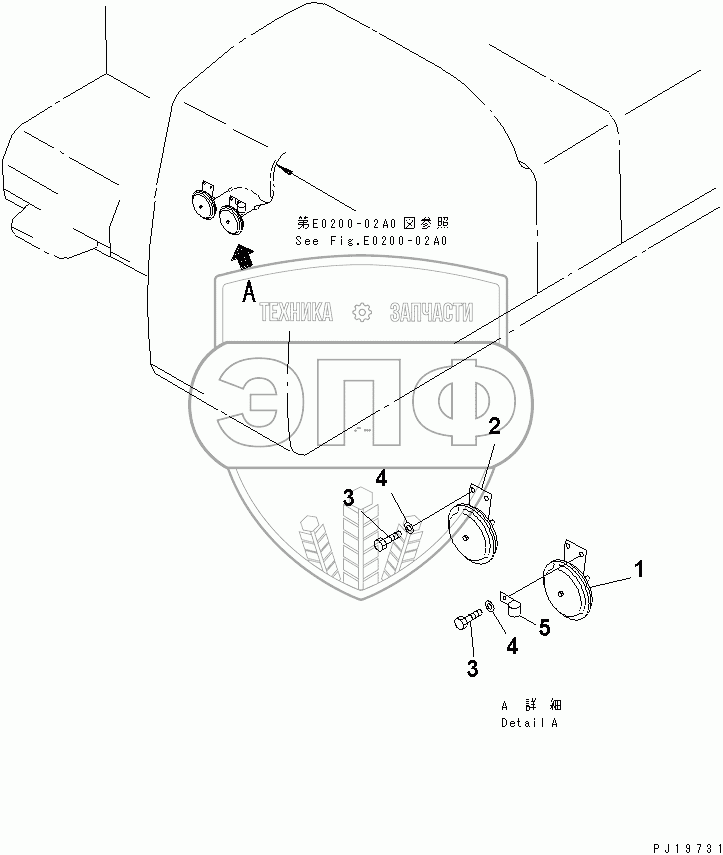 Каталог запасных частей к технике: Komatsu PC210LC-6. HORN