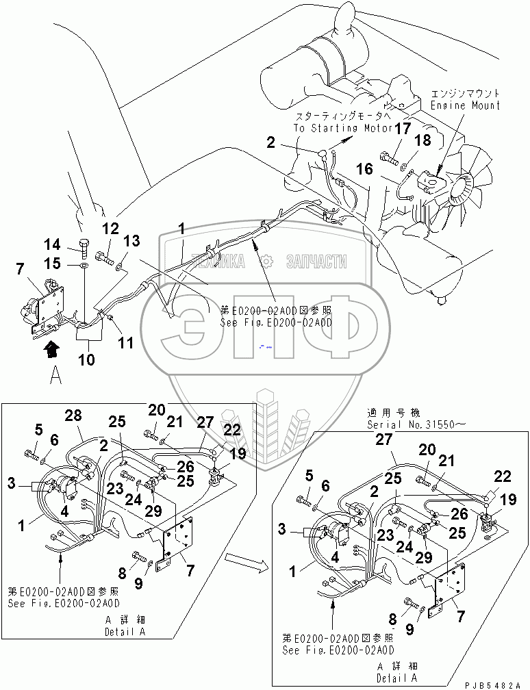 Каталог запасных частей к технике: Komatsu PC210LC-6. WIRING (STARTING HARNESS)(#30980-)