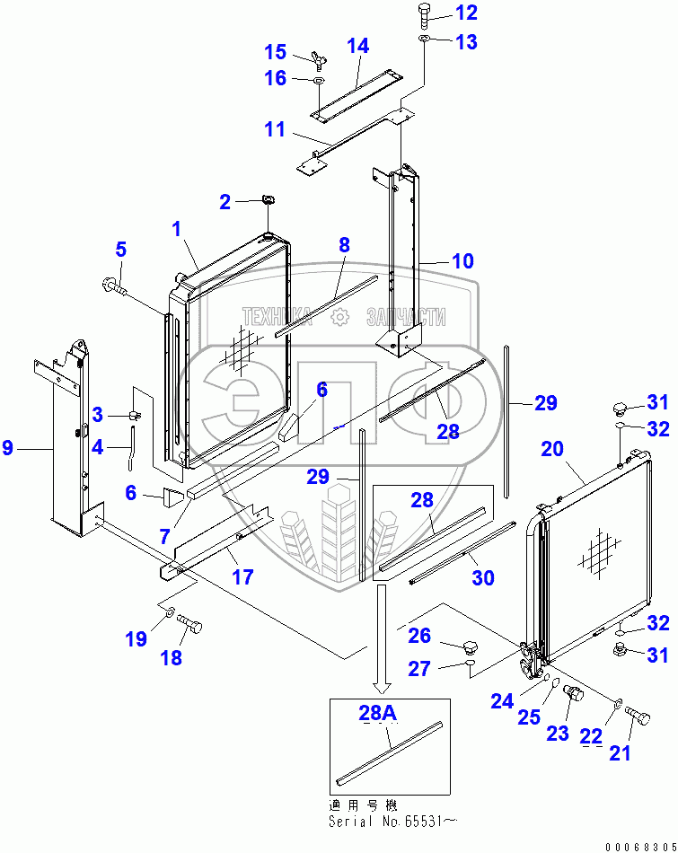 Каталог запасных частей к технике: Komatsu PC220-7. COOLING (RADIATOR)(#65001-)