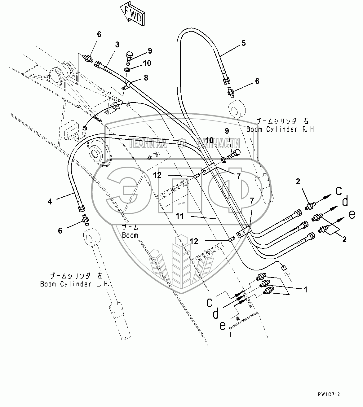 Каталог запасных частей к технике: Komatsu PC220LC-8MO. Boom, Lubrication Piping (#100001-)