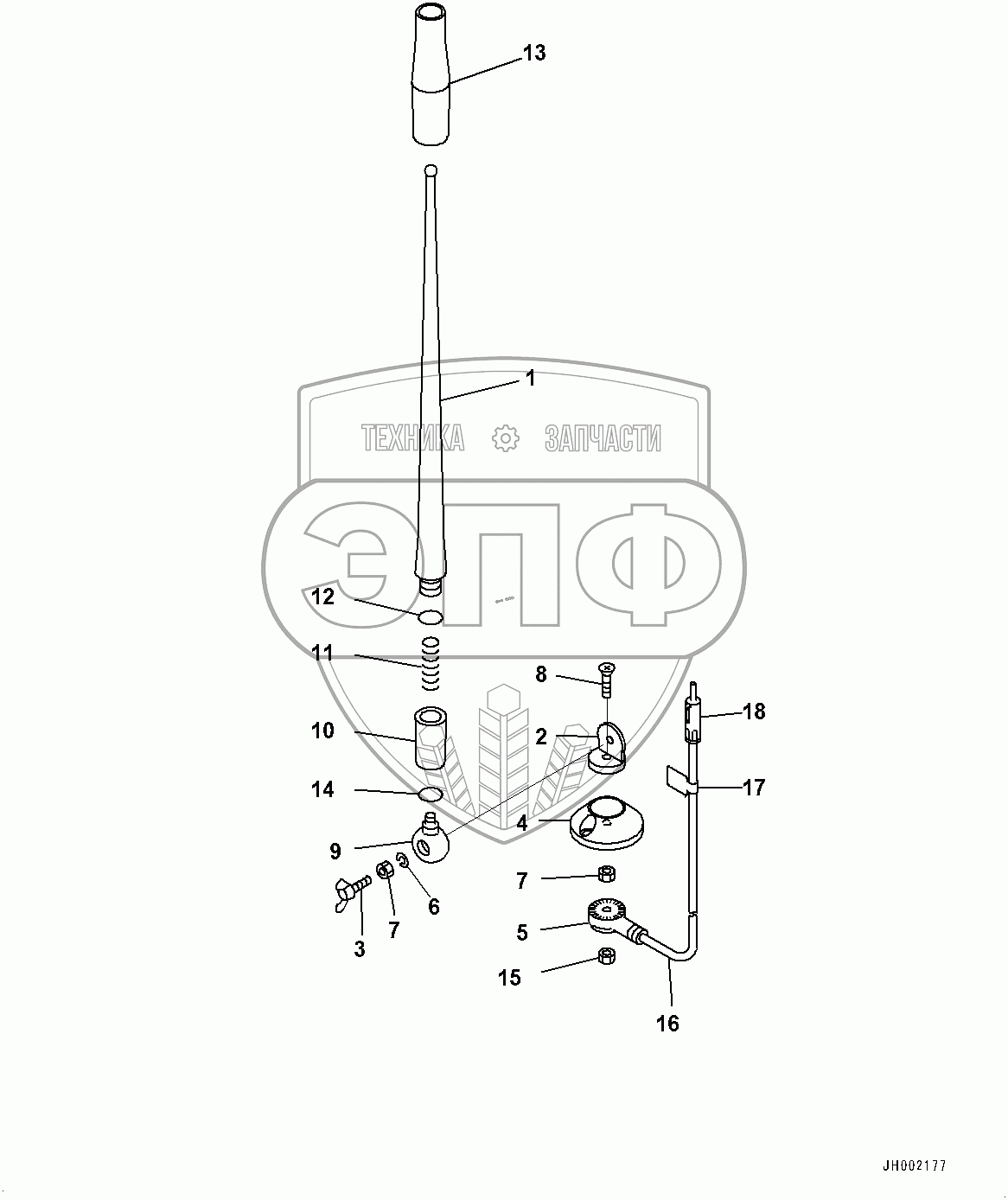 Каталог запасных частей к технике: Komatsu PC220LC-8MO. Cab, Rubber Antenna (#100001-)