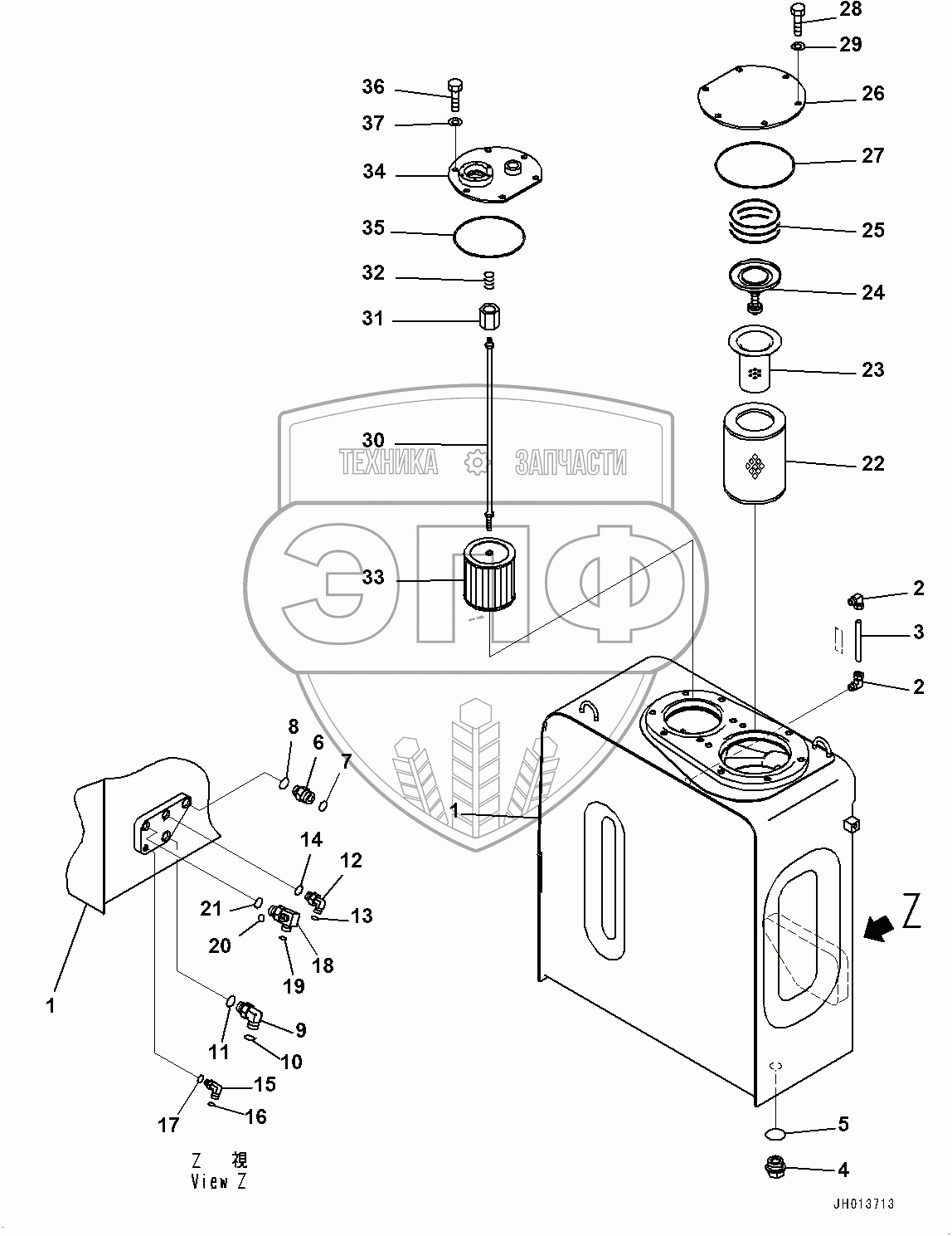Каталог запасных частей к технике: Komatsu PC220LC-8MO. Hydraulic Tank, Tank (#100059-)