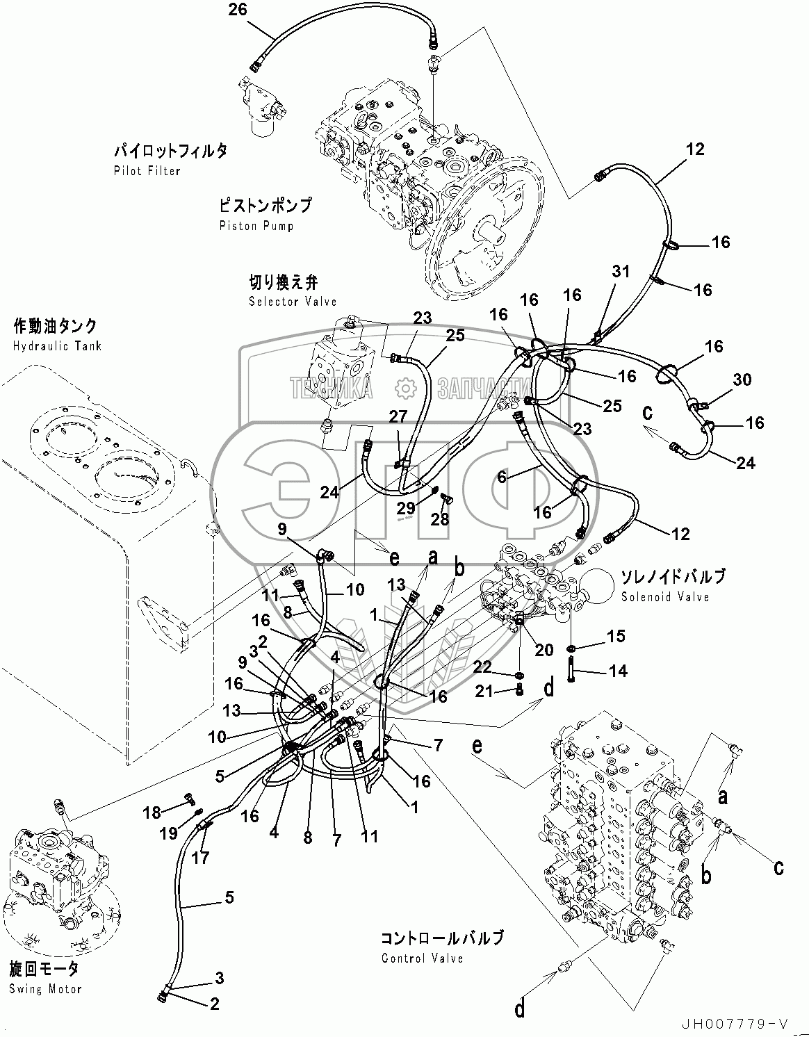 Каталог запасных частей к технике: Komatsu PC220LC-8MO. Solenoid Valve, Piping (#100001-)