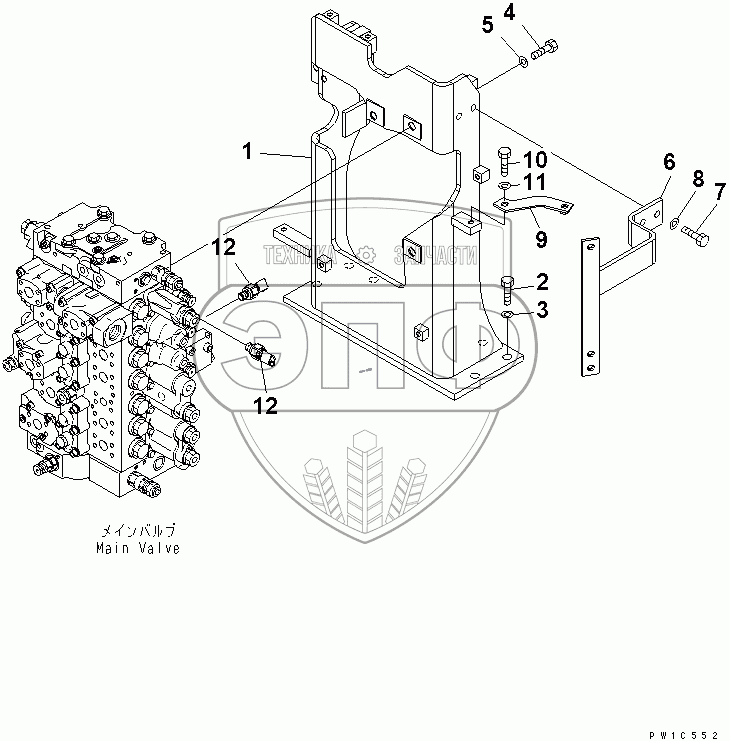 Каталог запасных частей к технике: Komatsu PC300-7. MAIN VALVE (VALVE BRACKET)