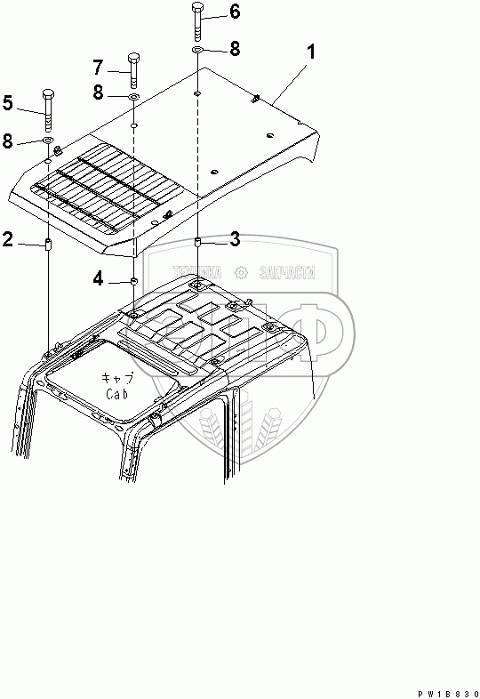 Каталог запасных частей к технике: Komatsu PC300-7. TOP GUARD(#40001-40011)