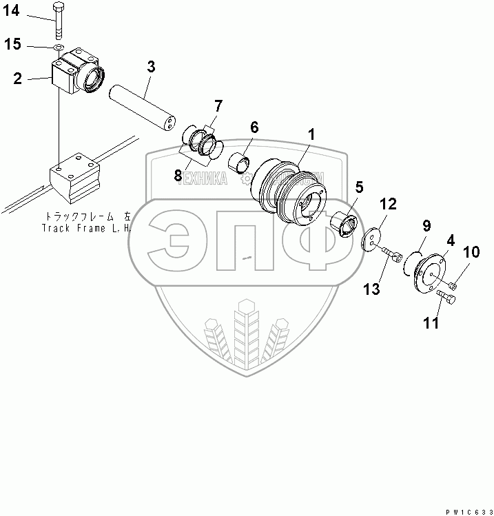 Каталог запасных частей к технике: Komatsu PC300LC-7. CARRIER ROLLER(#45001-45490)