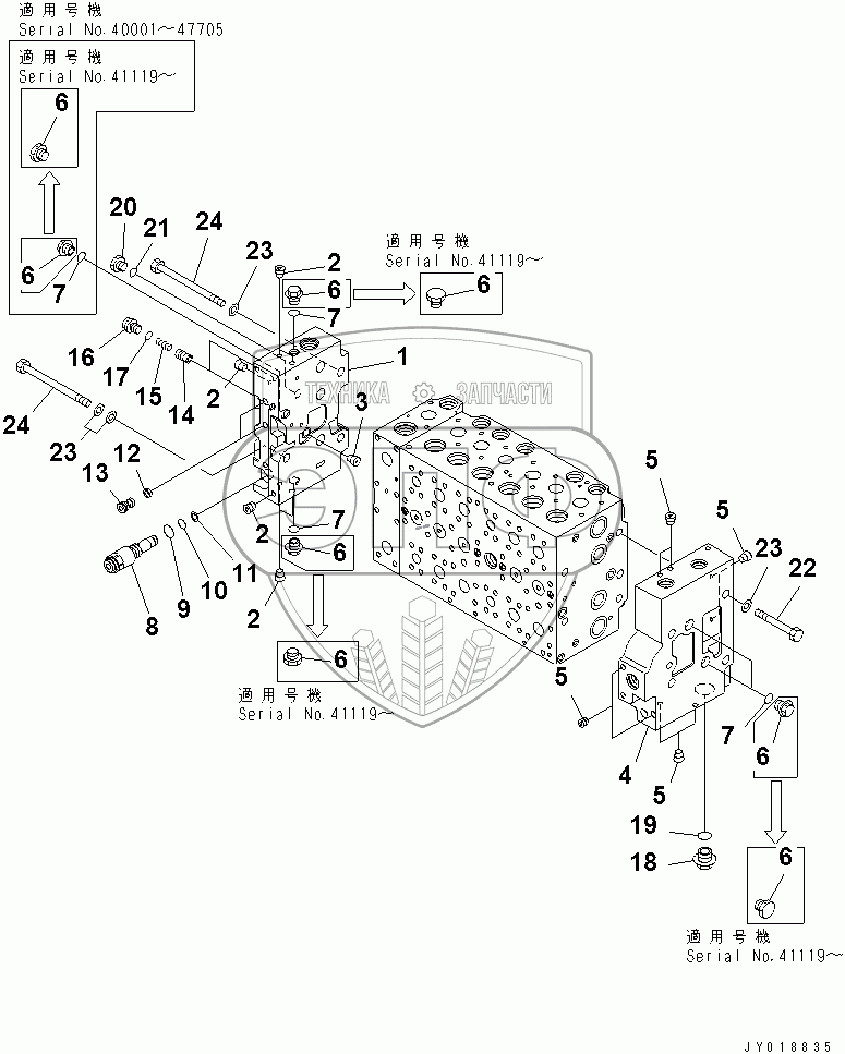 Каталог запасных частей к технике: Komatsu PC300LC-7. MAIN VALVE (7/20)