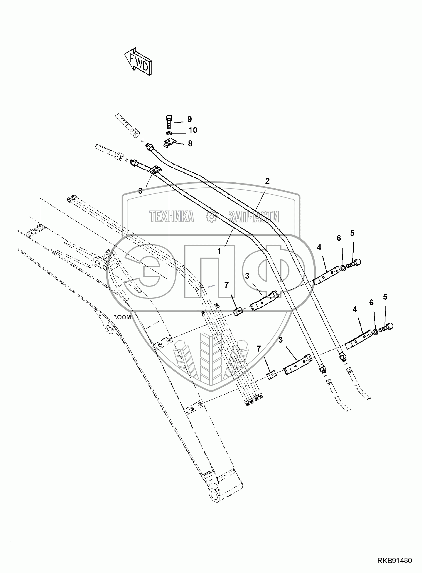 Каталог запасных частей к технике: Komatsu PC35MR-3. BOOM, 1-ATTACHMENT PIPING