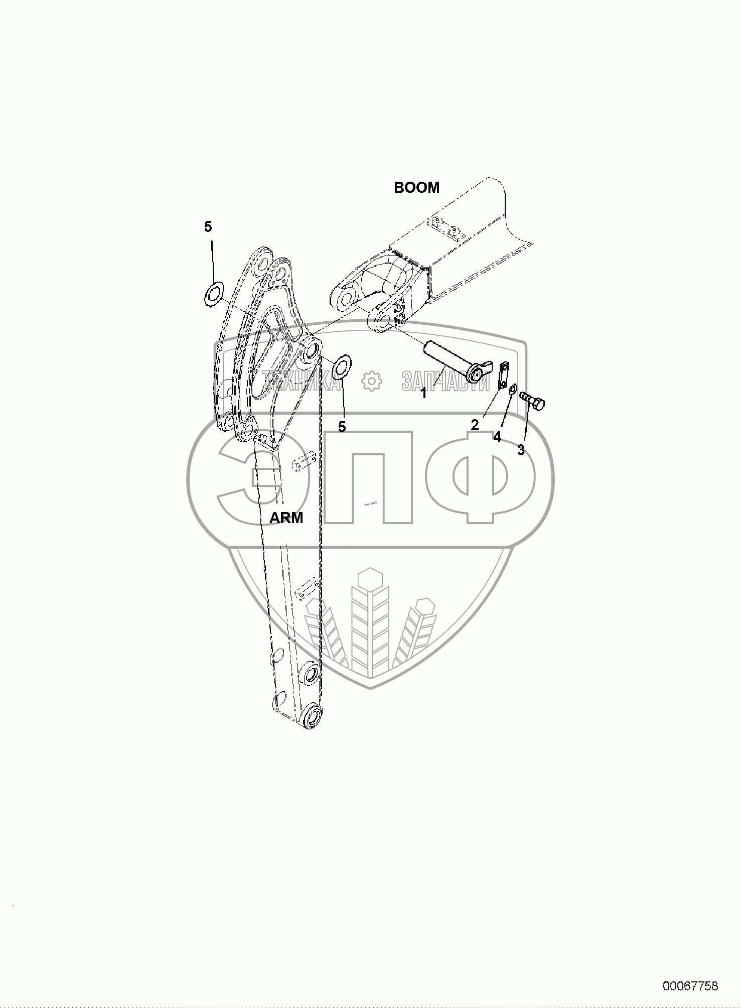 Каталог запасных частей к технике: Komatsu PC35MR-3. BOOM, 2-ATTACHMENT, PIN