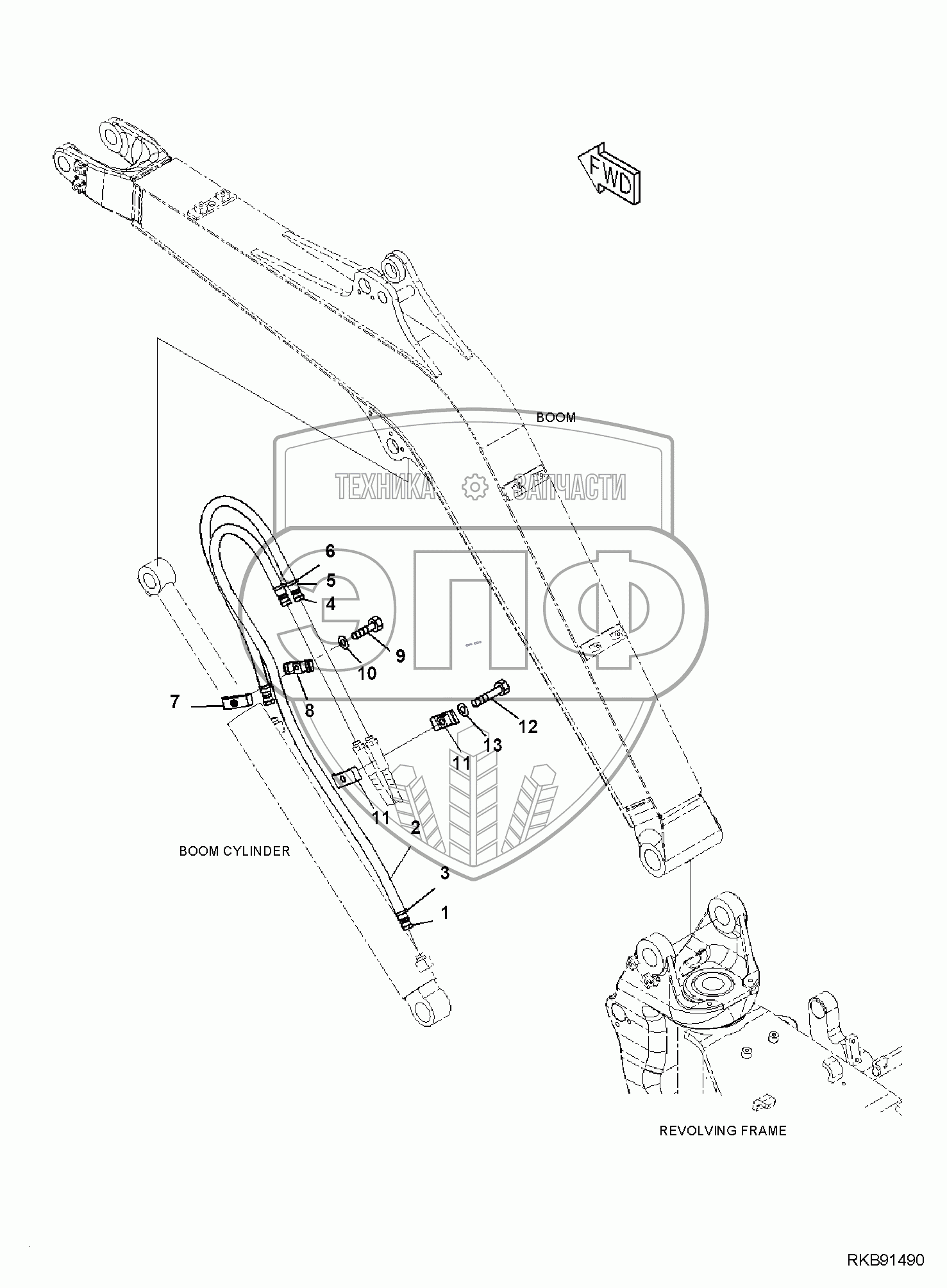 Каталог запасных частей к технике: Komatsu PC35MR-3. BOOM, BOOM CYLINDER PIPING