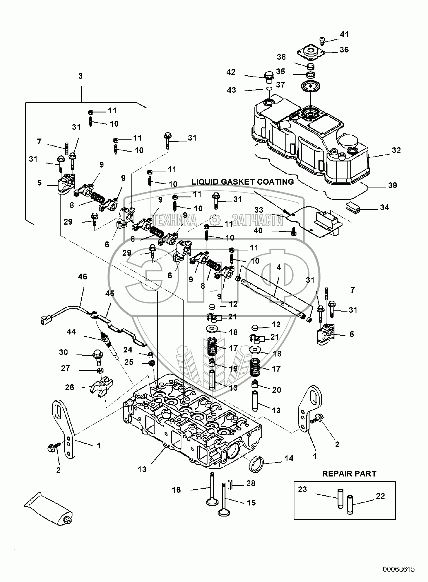 Каталог запасных частей к технике: Komatsu PC35MR-3. ENGINE, CYLINDER HEAD