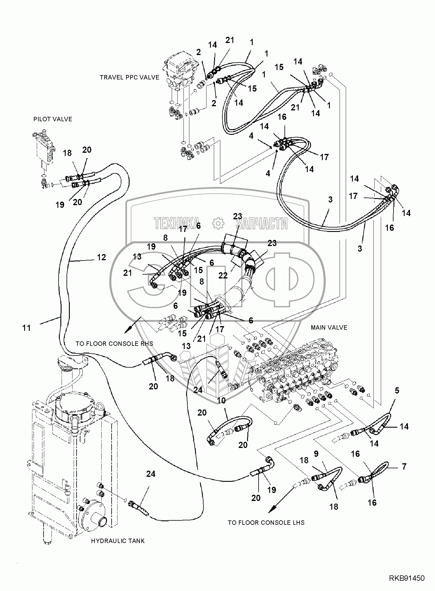 Каталог запасных частей к технике: Komatsu PC35MR-3. MAIN CONTROL VALVE, PPC PIPING