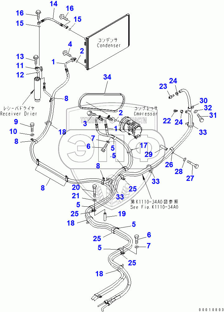 Каталог запасных частей к технике: Komatsu PC400-7. AIR CONDITIONER (PIPING)