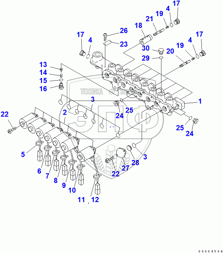 Каталог запасных частей к технике: Komatsu PC400-7. SOLENOID VALVE (INNER PARTS)