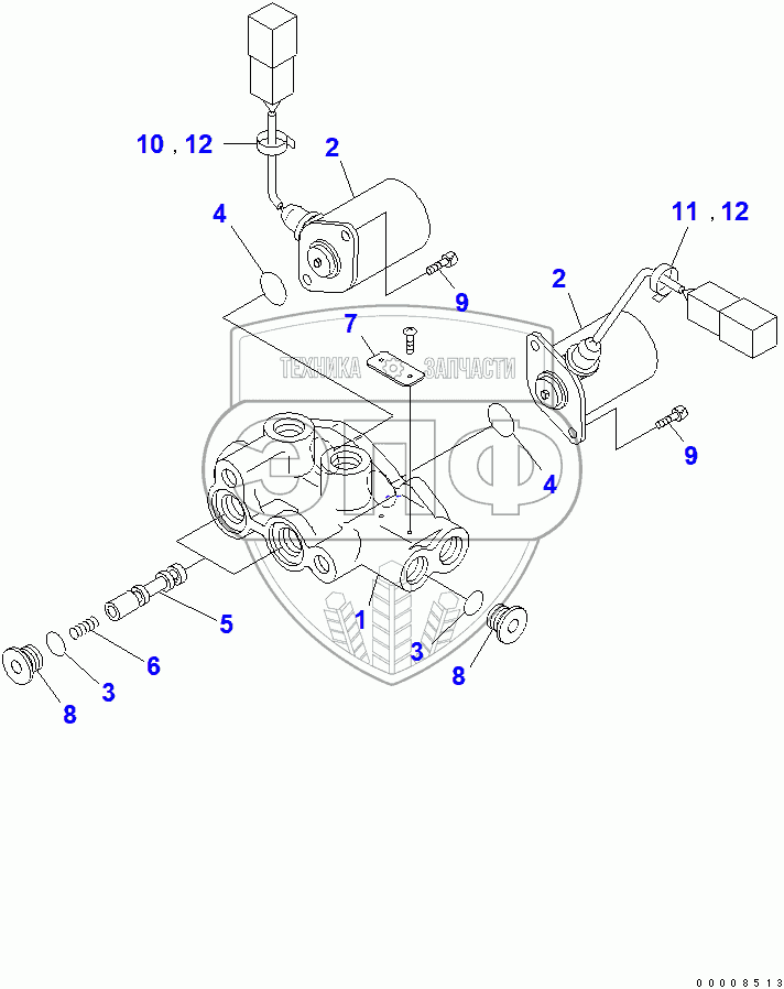 Каталог запасных частей к технике: Komatsu PC400-7. SOLENOID VALVE (INNER PARTS)