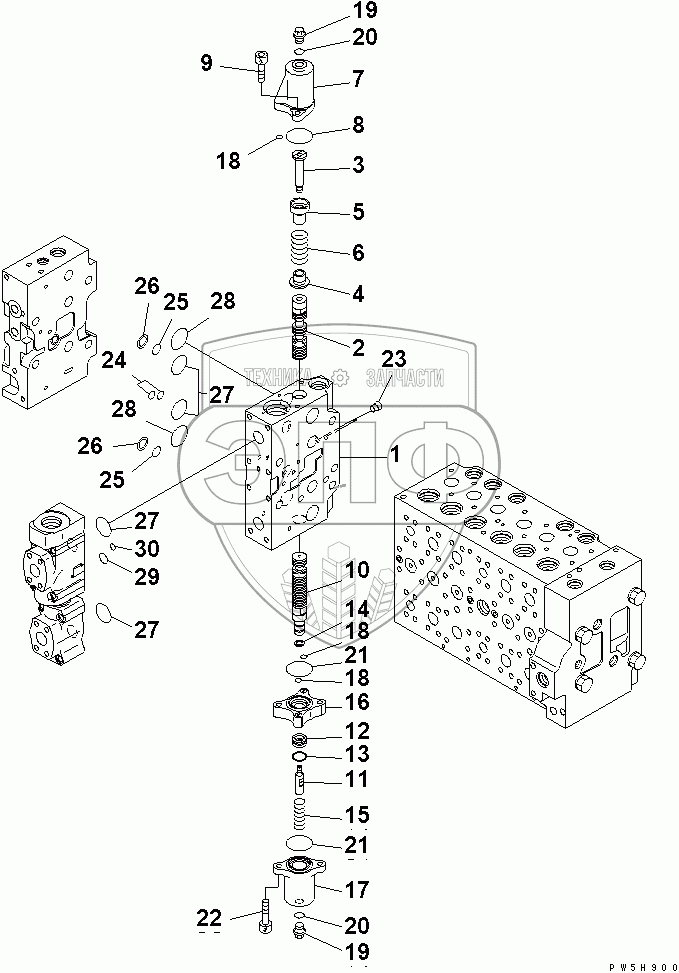 Каталог запасных частей к технике: Komatsu PC400LC-7. CONTROL VALVE (17/20)