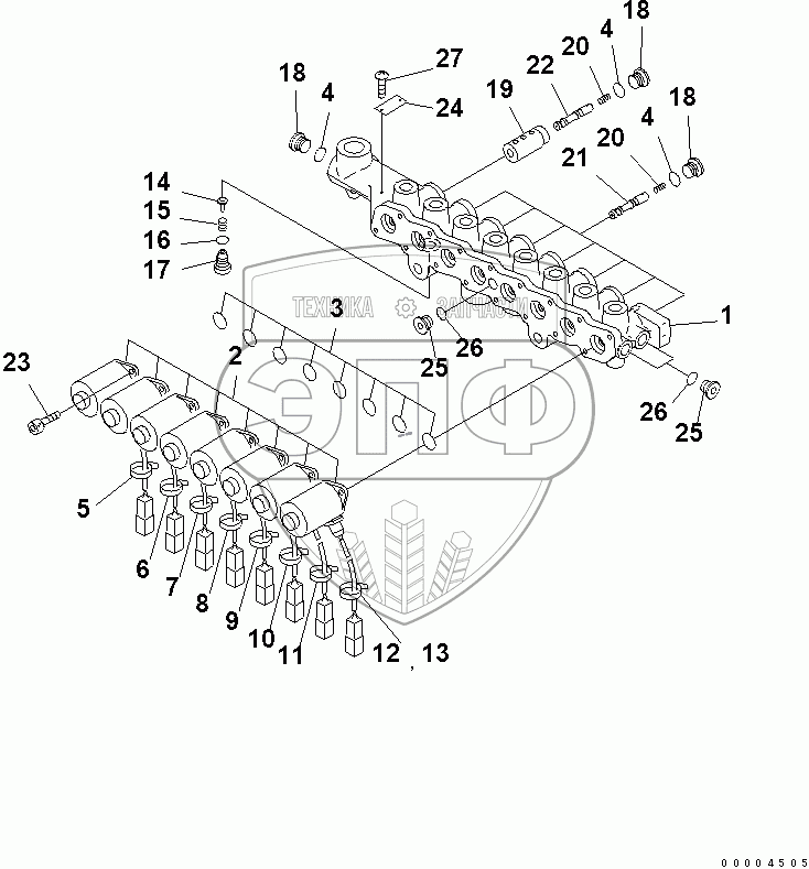 Каталог запасных частей к технике: Komatsu PC400LC-7. SOLENOID VALVE (INNER PARTS)