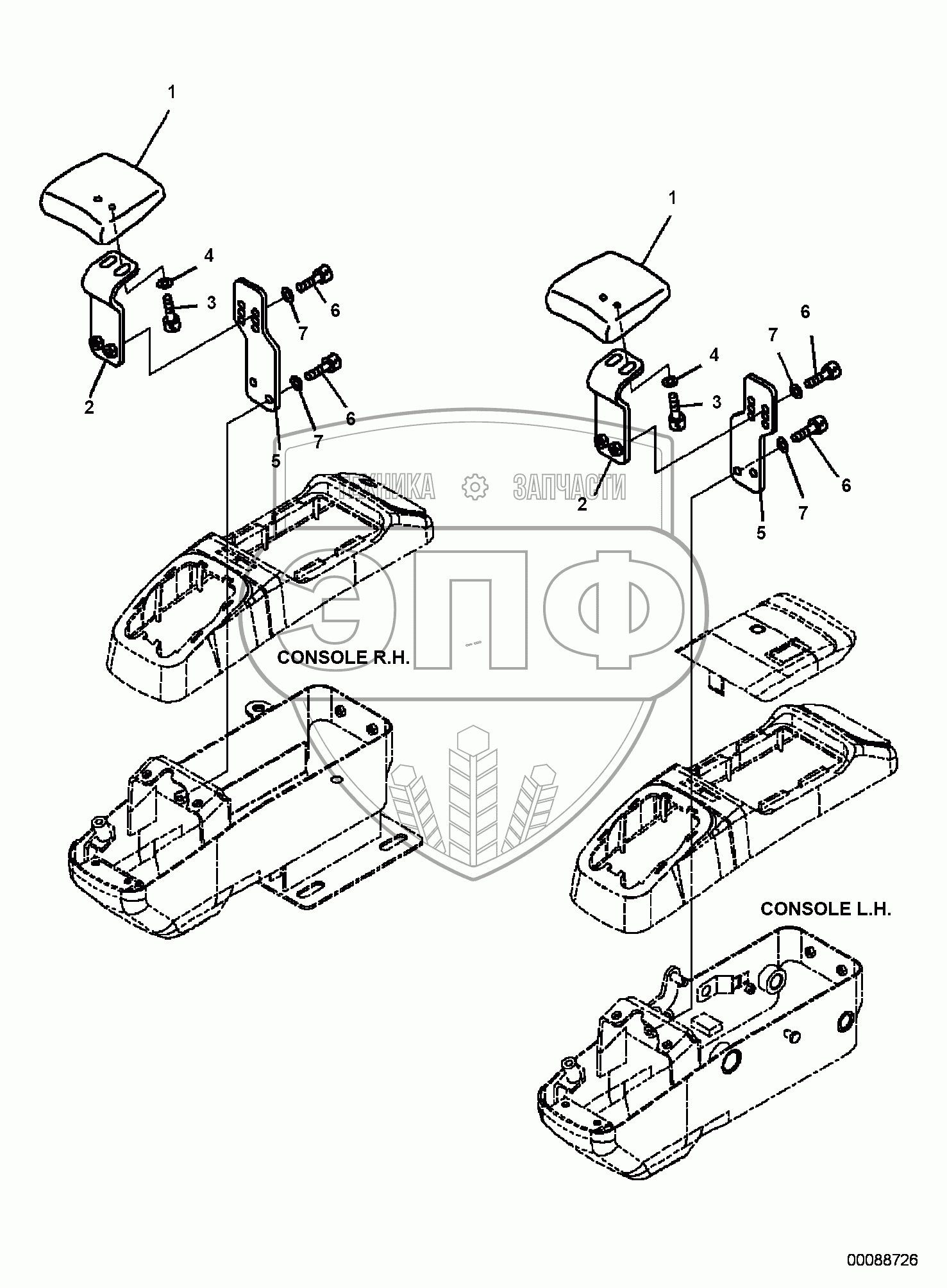 Каталог запасных частей к технике: Komatsu PC55MR-3. CAB, 1-ATTACHMENT, WRIST REST