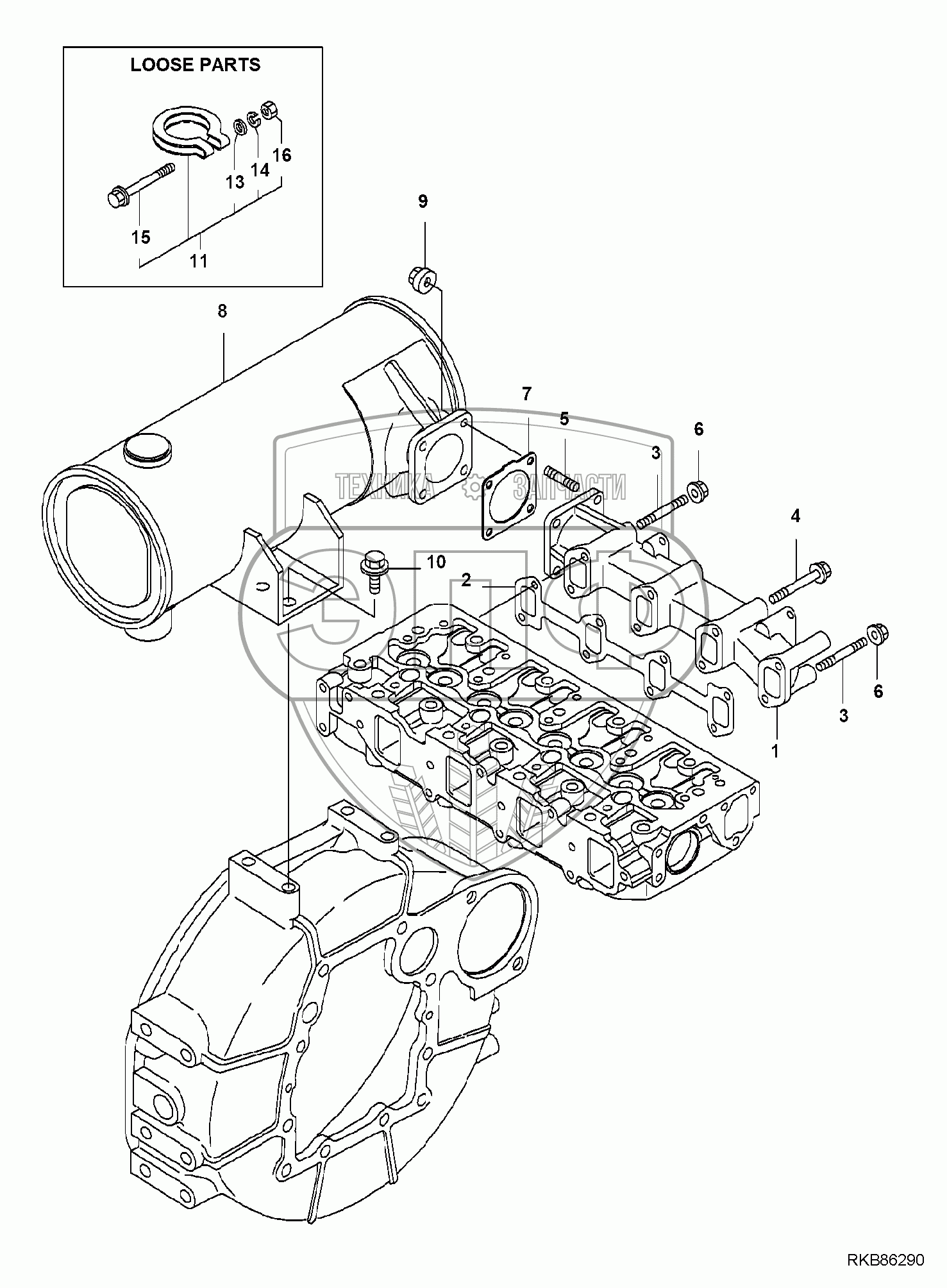Каталог запасных частей к технике: Komatsu PC55MR-3. ENGINE, WITH CANOPY, EXHAUST MANIFOLD