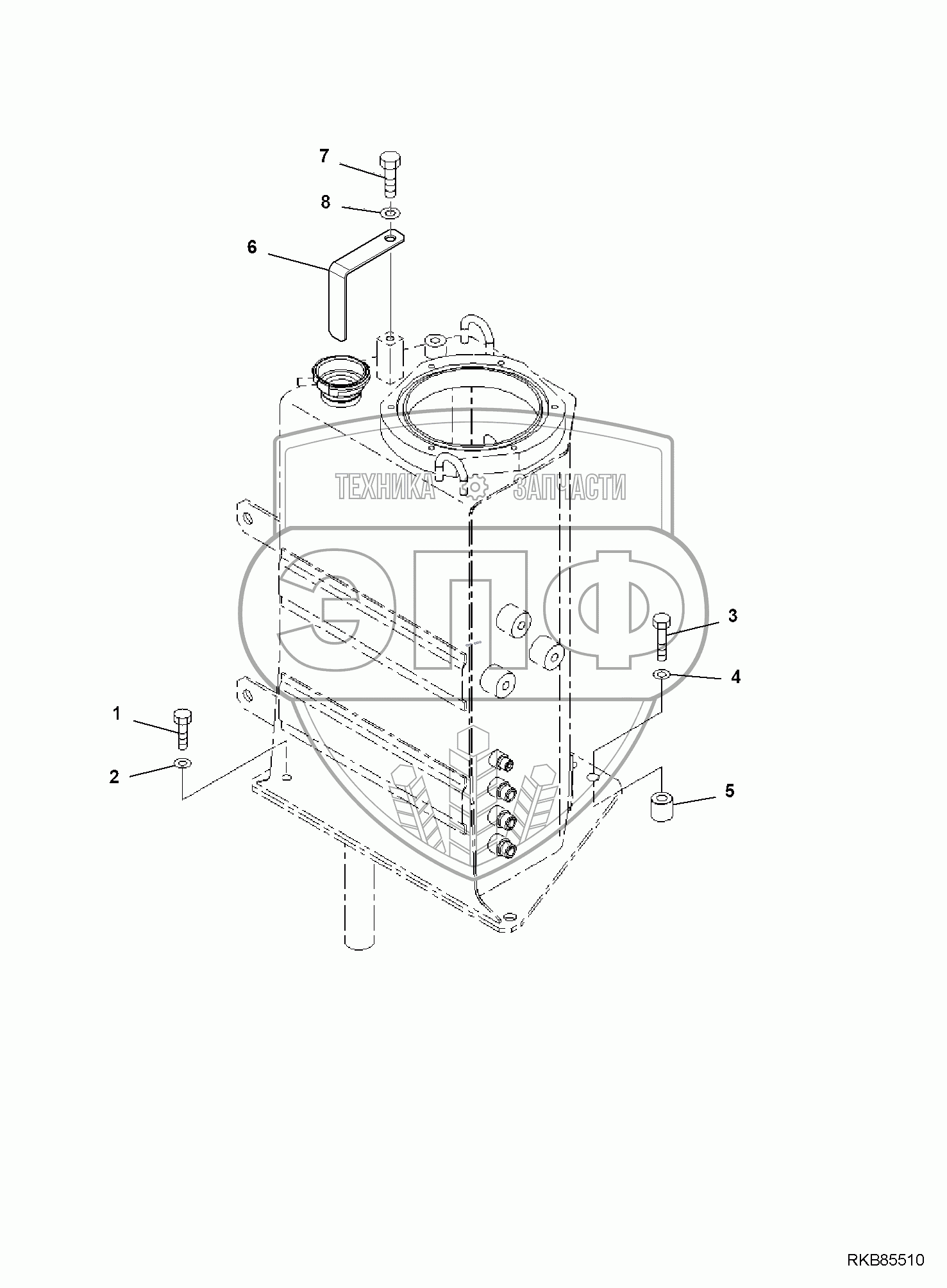 Каталог запасных частей к технике: Komatsu PC55MR-3. HYDRAULIC OIL TANK, MOUNTS
