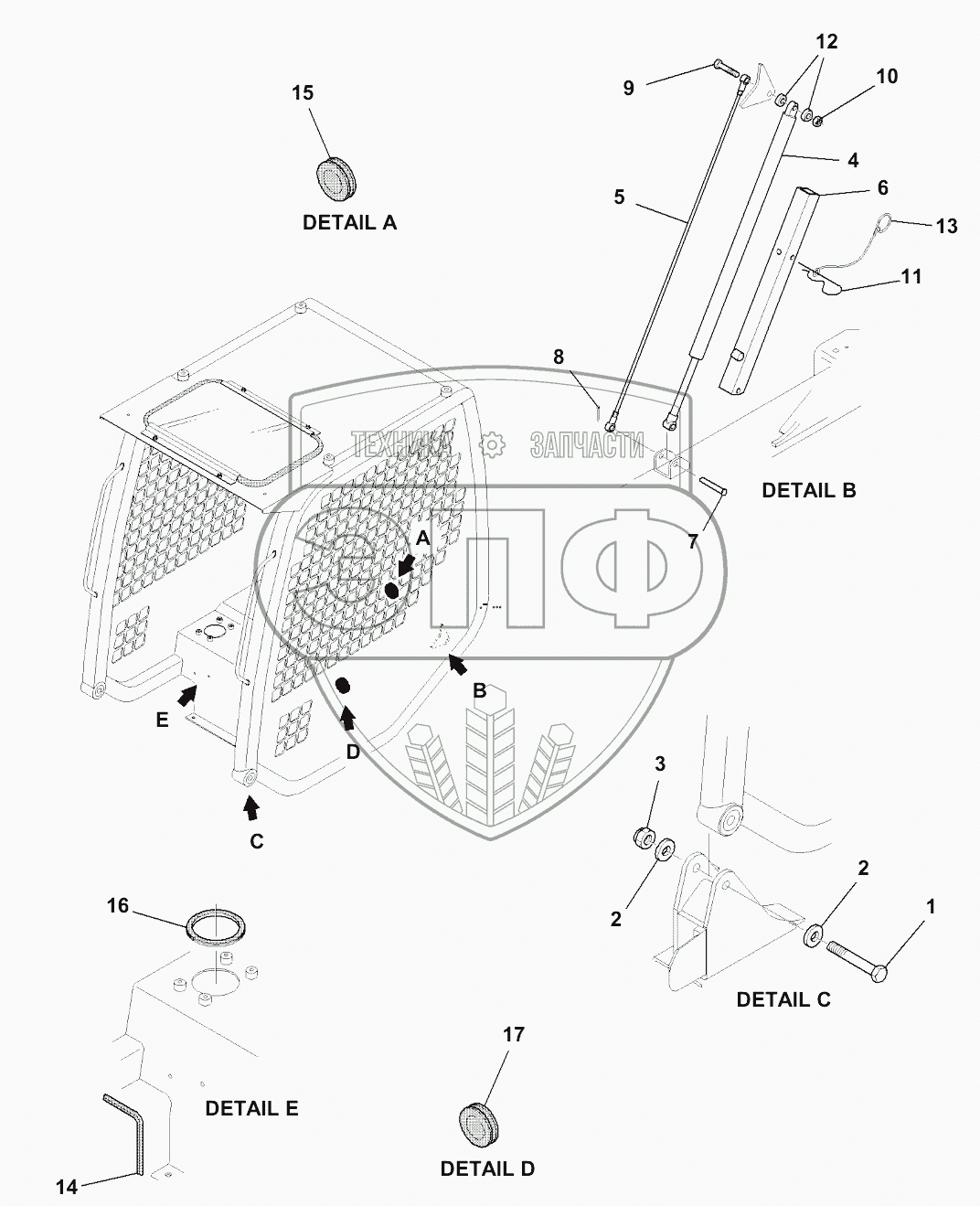 Каталог запасных частей к технике: Komatsu Погрузчик SK820. K0410-001002 CAB, CAB MOUNTS