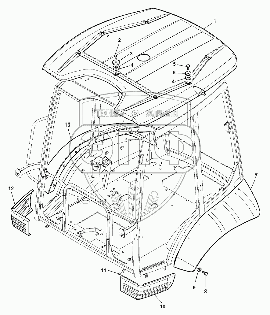 Каталог запасных частей к технике: Komatsu WB93S-5E0. CAB (9/14)