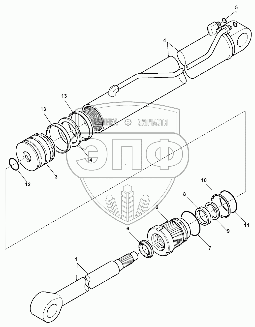Каталог запасных частей к технике: Komatsu WB93S-5E0. TELESCOPIC ARM CYLINDER