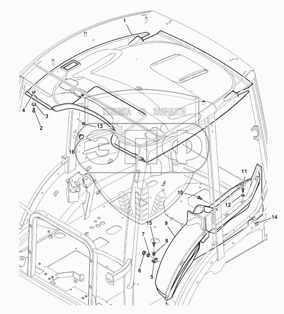 Каталог запасных частей к технике: Komatsu WB97S-5E0. CAB (12/14)