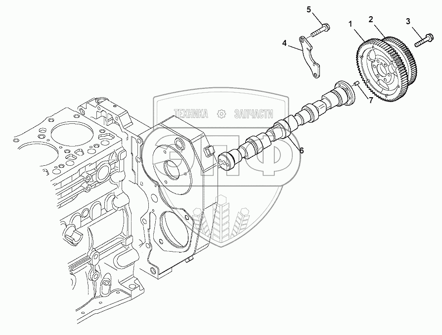 Каталог запасных частей к технике: Komatsu WB97S-5E0. CAMSHAFT AND DRIVING GEAR